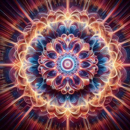 Glowing intricately designed mandala floating in colorful pastel background