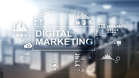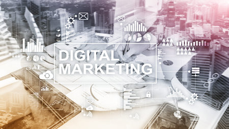 Digital marketing concept on double exposure background.