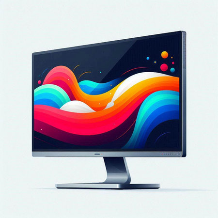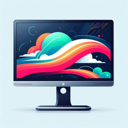 Computer monitor with colorful abstract background, vector illustration eps 10.