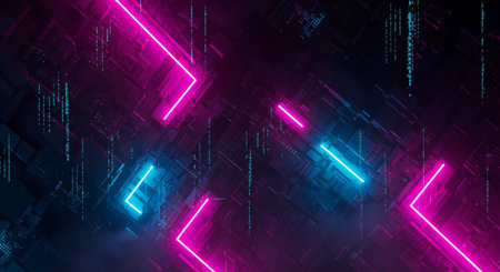Vibrant Neon Rectangles on a Dark Background Creating a Futuristic Matrix Effect with Bright Blue and Pink Illuminated Lines