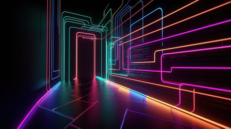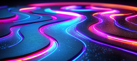 Vibrant glowing neon lines overlay creating dynamic background texture