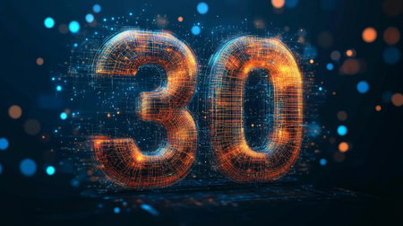 Glowing Futuristic Digital Number 30 on Abstract Background Celebration, Technology, Innovation
