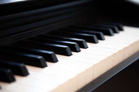 Close-up or macro image of piano keys by selective focus technique can be seen the details of classic instruments used in both Jazz and pop music which background and foreground are blurred.