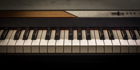 Closeup piano keyboard on front view with dark vignette