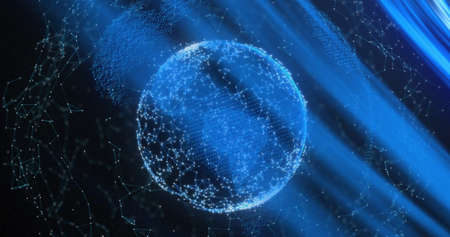 3D Digital orbital earth in cyberspace showing concept of network technology . Hologram of globe sphere graphic connect to internet presents global communication and connection network . 3D render .