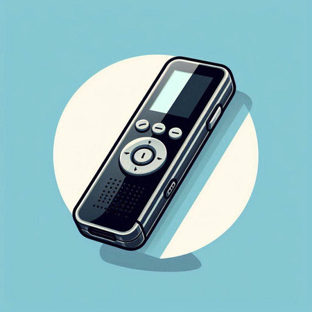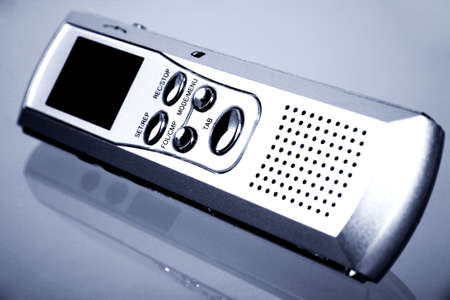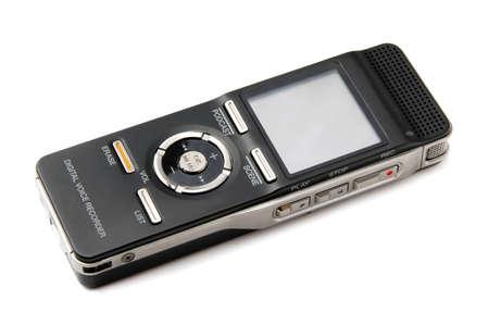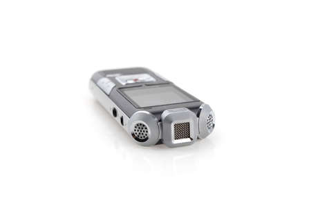 The voice recorder is isolated on a white background. Dictaphone close-up on a white background.