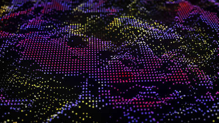 Digital database cyberspace. Decoding algorithms hacked software. Cyber security with moving colored particles. Big data visualization. 3d rendering.