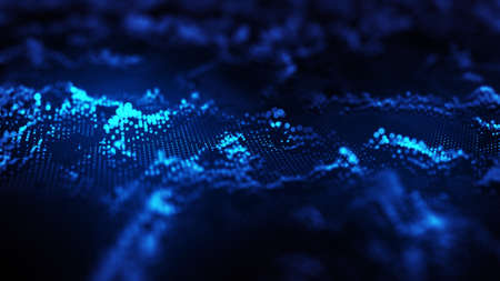 Wave 3d. Wave of particles. Abstract Blue Geometric Background. Big data visualization. Data technology abstract futuristic illustration. 3d rendering.