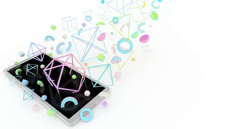 Smartphone 3d illustration. Online entertainment. Modern gadget. Smartphone game. Network. Social media. 3d rendering. Mobile gaming.