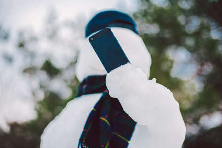 Snowman using smart phone