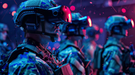 In a virtual warzone soldiers utilize VR technology to survey the area and gather information as part of their strategic planning