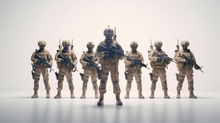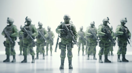soldiers with weapons in their hands in contrasting colors. defense of the country and its defenders in form of toys, by ai generative