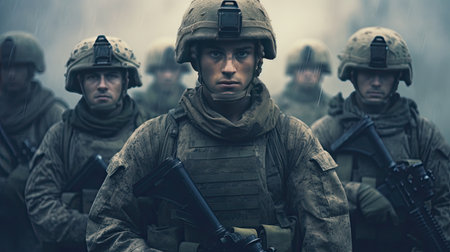 Brave army soldiers in camouflage uniform fighting for their country generated by artificial intelligence