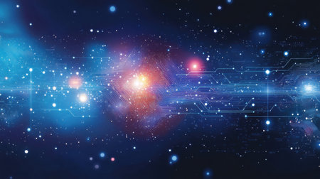 Futuristic technology connecting planets in a vibrant galaxy