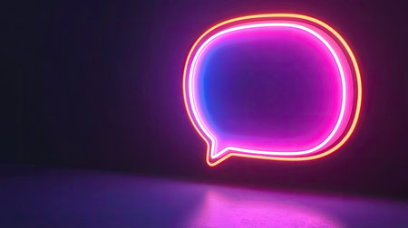 A vibrant neon speech bubble light glows against a dark background, perfect for conveying communication and dialogue themes in modern design.