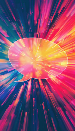 Dynamic Glossy Speech Bubble with Abstract Colorful Light Streaks for Modern Design Themes