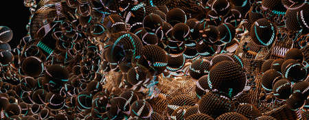 Abstract 3d rendering of chaotic structure. Colorful spheres. Futuristic background.