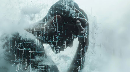 The concept of human dependence on digital technology. AI generation.