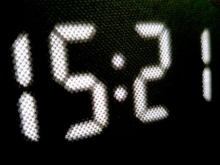 Digital clock on black background.