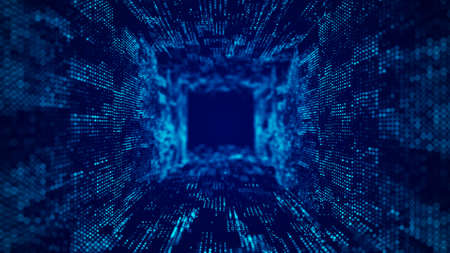 3d illustration of abstract technology tunnel with glowing lines and particles.