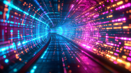 Futuristic Data Stream Tunnel with Neon Lighting, High Resolution Digital Illustration