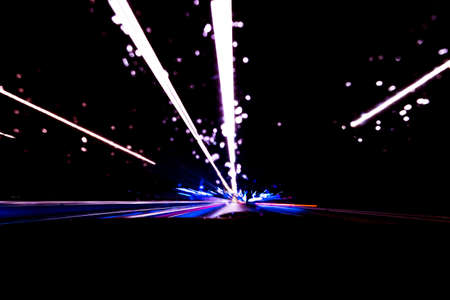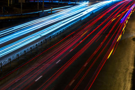 Night road lights. Lights of moving cars at night. long exposure multicolored