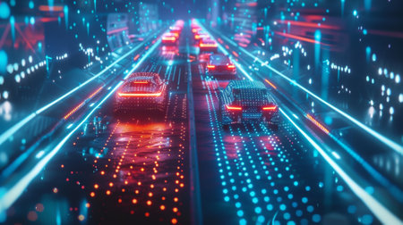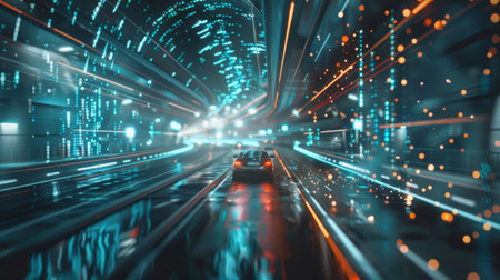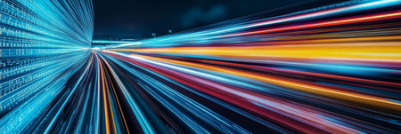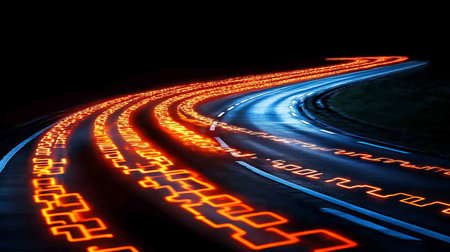 Futuristic Visualization of Digital Data Transfer with Highway Lights and Internet Connection Flow