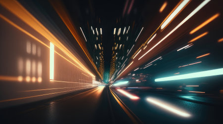Long Exposure of Traffic Light Trails in Tunnel. Generative ai. High quality illustration