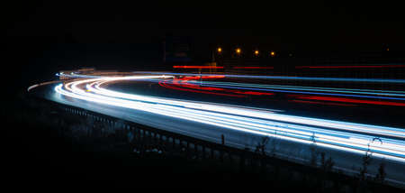 lights of cars with night. long exposure, light lines