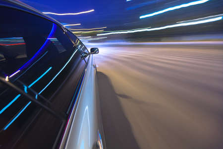Car speed night drive on the road in city