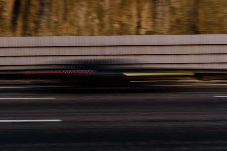 Fast And Dangerous Speeding Car On A Highway, Country Asphalt Road. Motion Blur Background