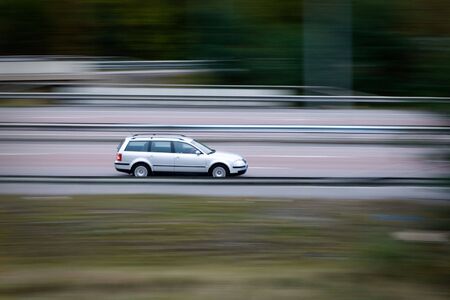 Fast moving blurry cars driving on the highway. European highway traffic at blurry motion. Motorway traffic in the Czech Republic.