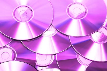 Piles of old and dirty CDs,DVD on pastel background. Used and dusty disk with copy space for add text