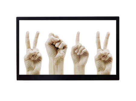 Hands 2012 in monitor isolated on white