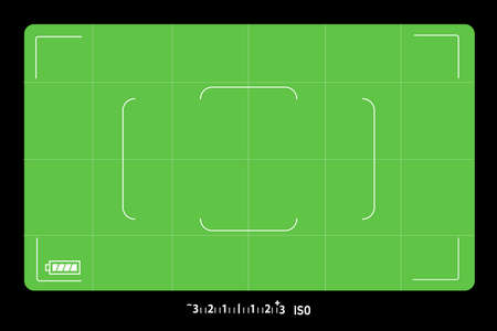 Camera viewfinder night vision video or photo frame recorder flat style design vector illustration. Digital camera viewfinder with exposure settings and focusing grid template.