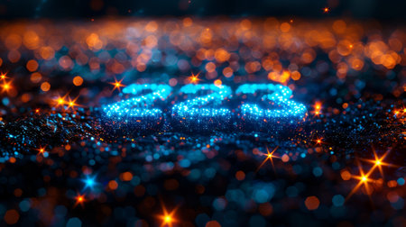 Glowing Digital 3D Number 2029 Representation Against Futuristic Abstract Technology Background