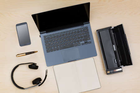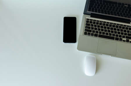 office work with laptop, smart phone and tablet with selective focus and ample copy space