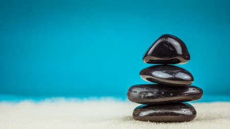 Balance stones on blue background, coaching, life coach banner