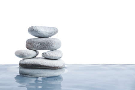Stack of spa stones in water on white background