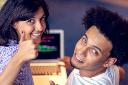 happy young african couple with laptop computer