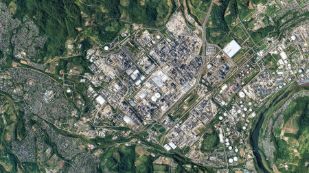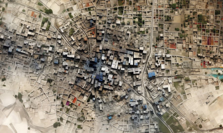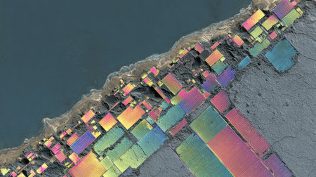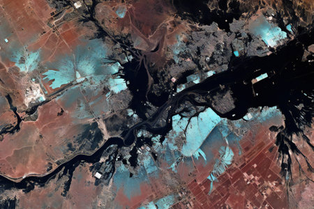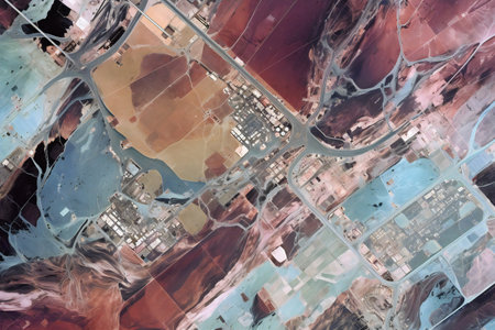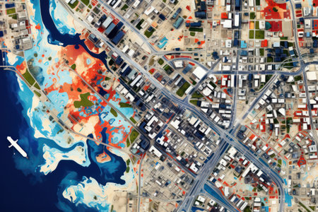 Satellite view of coastal region revealing urban development and agricultural patterns over time. Generative AI