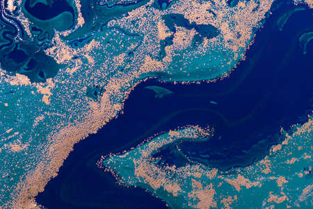 Abstract background. Abstract patterns of blue and green water blooms. Colorful background splash green, blue, turquoise waters. Color ink abstract background.
