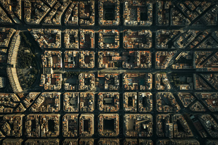 Aerial View of a City From Above, Bird's view of the grid layout of the city of Barcelona, AI Generated