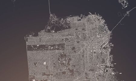 San Francisco city map 3D Rendering. Aerial satellite view.