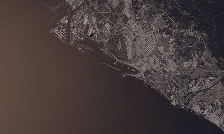 Barcelona, Spain city map 3D Rendering. Aerial satellite view.