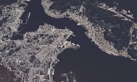 Hong Kong city map 3D Rendering. Aerial satellite view.