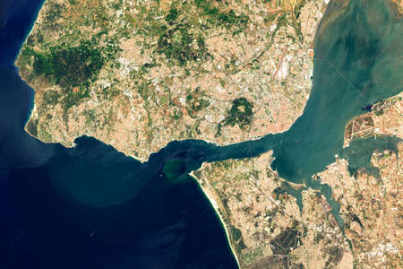 Satellite image of Lisbon, Portugal.