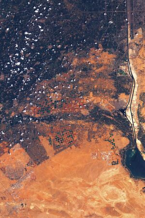 Nile valley in Egypt, satellite image. Desert, contains modified Copernicus Sentinel data