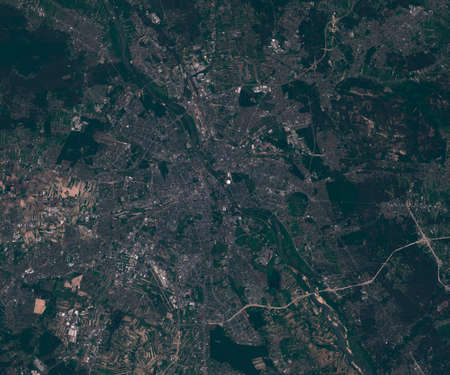 Satellite map of Warsaw Poland, view from space. contains modified Copernicus Sentinel data