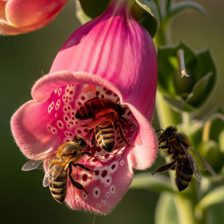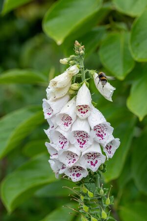 Close up of a common foxglove (digitalis purpurea) with bees
